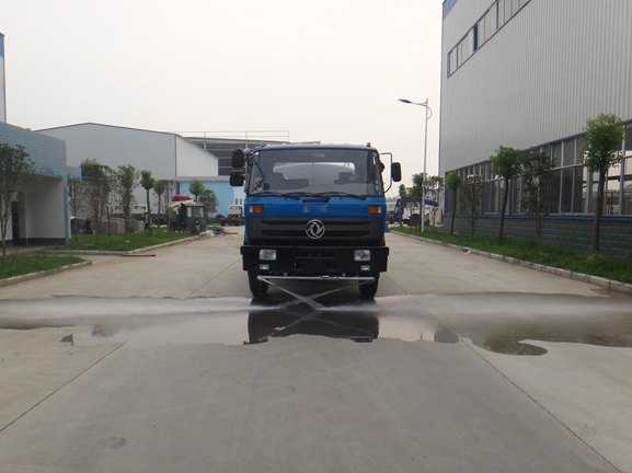 上裝配置:罐體采用4mm厚武鋼集團供應的罐車專用板材制作,罐體容積:15立方;罐內防浪隔板具有防波作用,減低罐內液體的沖擊。配備國內知名品牌日本技術大功率灑水車專用水泵,可自吸自排,引水時間<10min,流量60m3/h,揚程90米。東風天龍灑水車其它專用部分標配為:前沖、后灑、側噴、后工作平臺、360度可調節綠化水炮,垂直吸程≧7米,灑水寬度≧16米,綠化水炮射程≧35米,自流閥、濾網、消防接口(可連接消防栓取水,可作應急消防用)。罐前量管(觀察罐內水位)、罐后爬梯、罐上罐口帶簡易護欄、罐側雙炮筒、3米長4寸鋼絲塑膠管兩根,罐體表面雙層油漆工藝,防銹、耐腐蝕,其余有廠家標配。