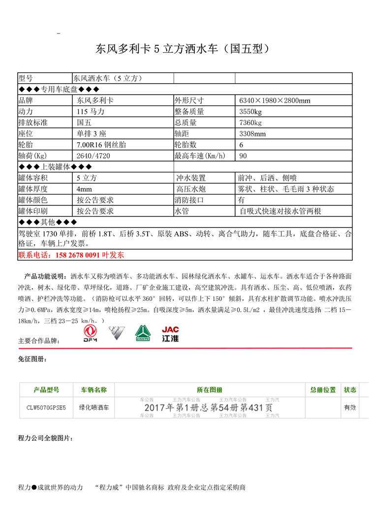 東風(fēng)多利卡5噸全柴灑水車