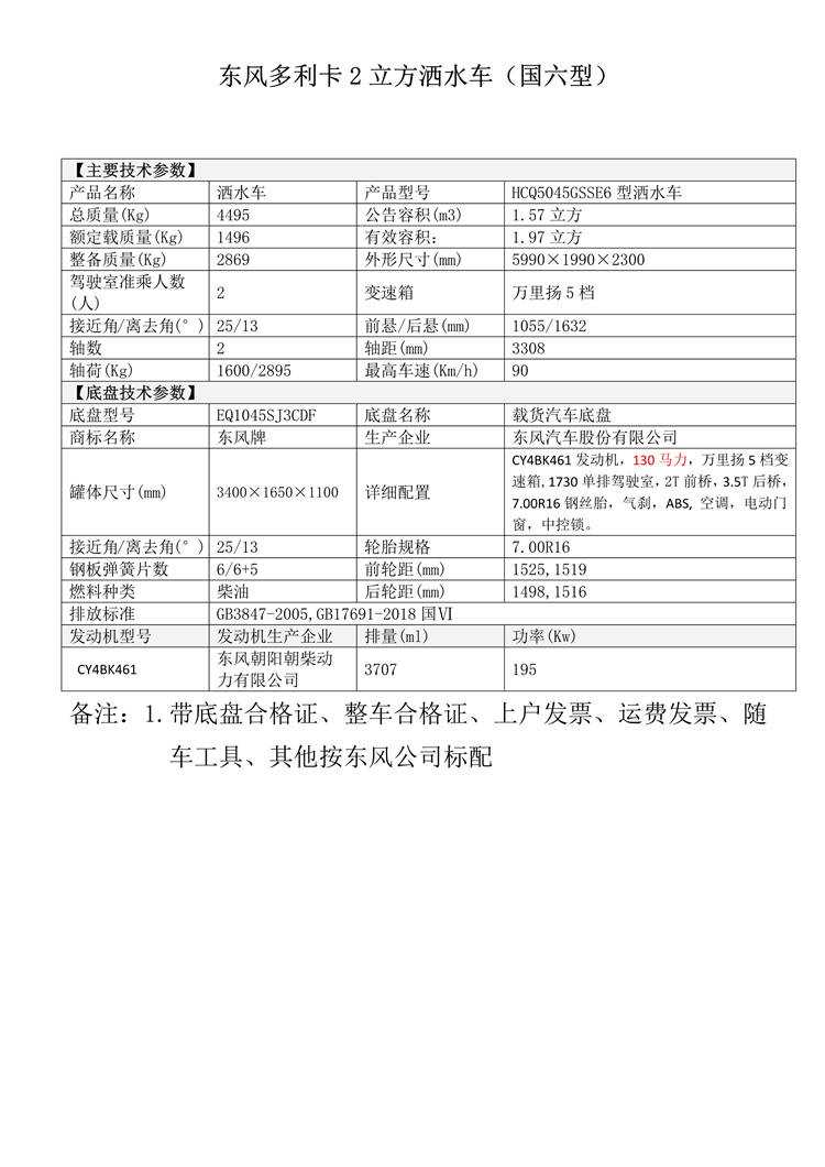 國六東風多利卡2立方灑水車